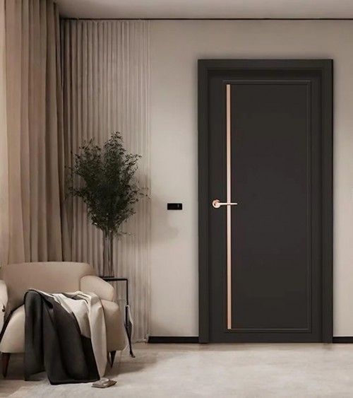 MAESTO doors are distinguished by a solid construction based on a wooden frame. Choosing MAESTO doors, you have the opportunity to choose from a wide range of UNI MAT PLUS surface colors. This unique coating is characterized not only by a beautiful matte finish, but also by silky haptics. We used a special coating that effectively prevents fingerprints from being left on the surface of the door. Details make all the difference, which is why you will find decorative aluminum decors with a width of 25 mm in MAESTO doors. You can choose from two elegant color options: matte copper or matte black. A 30 mm wide decorative frame kept in the color of the door leaf completes the whole, giving the door a harmonious look. Sturdy hollow board infill guarantees not only robustness, but also excellent thermal and acoustic insulation.