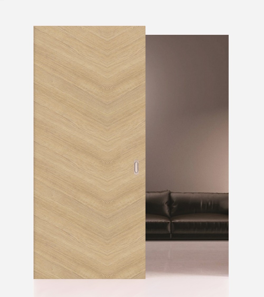 Door leaf with sliding system and rail, handles.