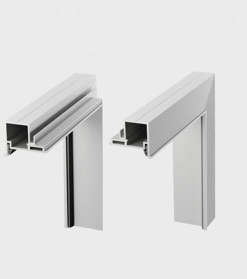 Piilotettu ovenkarmi sisään- tai ulospäin avautuville oville. Valmistettu anodisoidusta alumiinista, raaka-alumiinista tee-se-itse-maalaukseen seinän värisenä tai maalattu valkoiseksi (RAL 9003), mustaksi (RAL 9005); harmaa (RAL 7047), hiekka (NCS S 2005-Y50R).