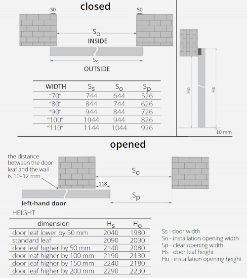 Komplett set: Dörrblad med skjutbart system och skena, handtag.